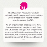 The Migration Museum stands in solidarity with people and communities under threat from recent violent attacks across the UK.